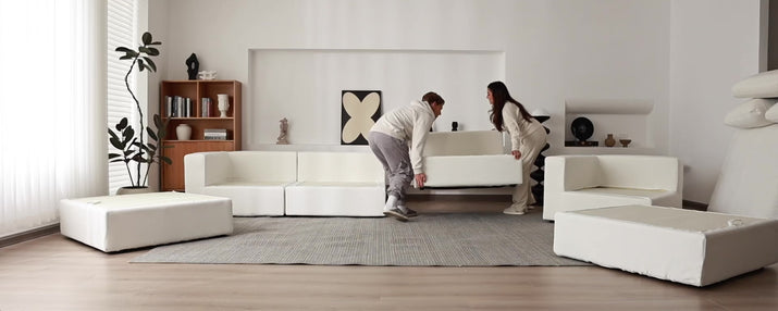 Answer 2: The sofa has almost 40 inch deep slipcovered cubes which offer endless customization options to fit any space and style preferences.