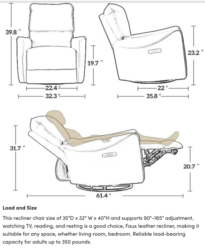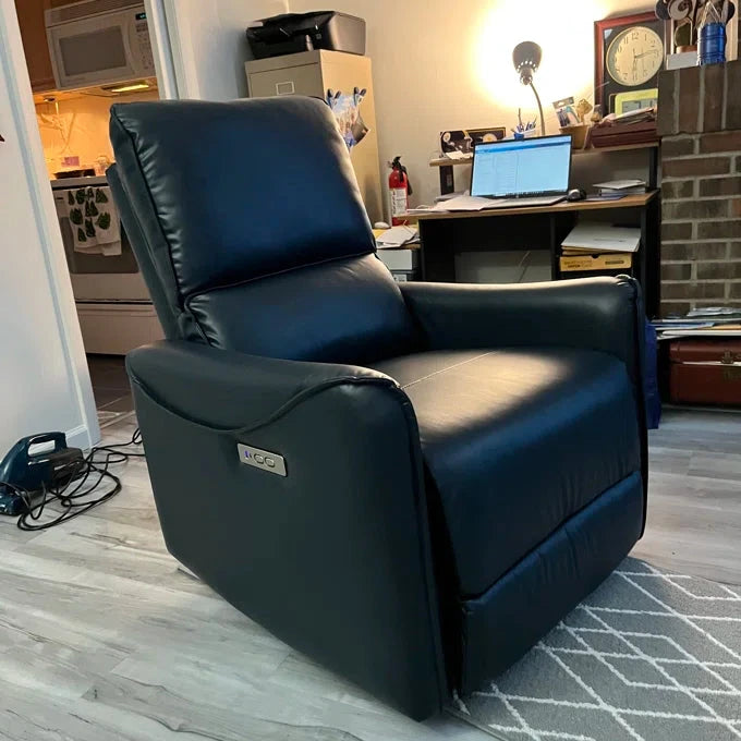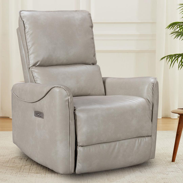 Modern Faux Leather Recliner (Swivel + Rocker + USB Charging)